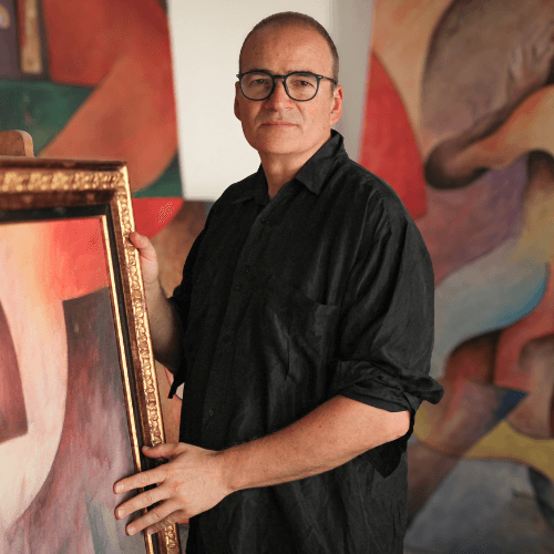 Soy Rodolfo Navarro y llevo más de 40 años creando arte. He expuesto en países como China, Francia, Alemania y España, y a lo largo de mi trayectoria, siempre he tenido una escuela y he trabajado en casi todas las disciplinas. He recibido múltiples premios por mis obras y soy autor del libro "Como vivir del arte".